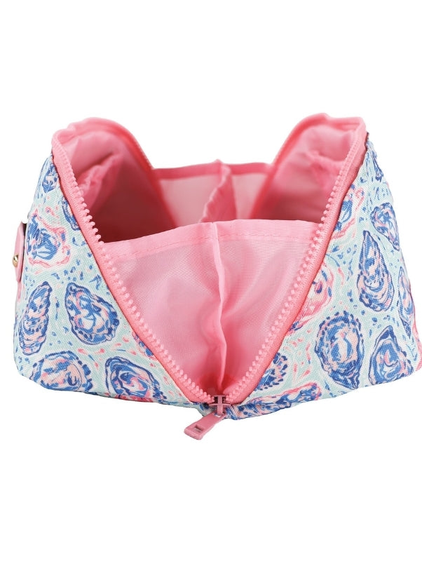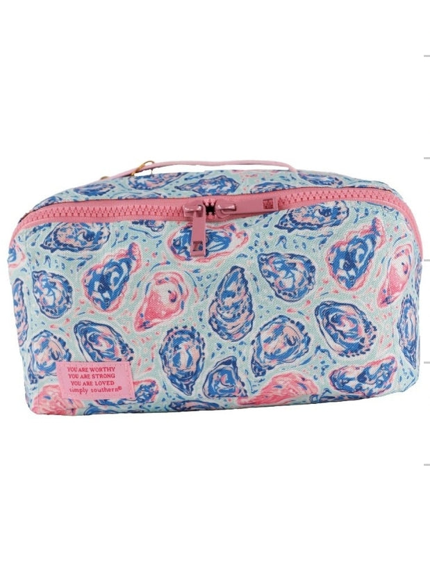 This cosmo bag features a zipper closure fully lined interior, printed exterior, divided interior pockets, and Simply Southern logo. Made of 100% polyester.