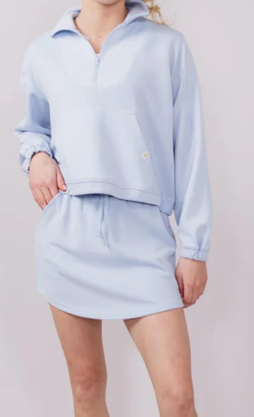 Get ready to zip through the day in style with the 0125-PULL-QTRZIP-PWDR from Simply Southern! This quarter zip pullover features a playful design and a half zip closure for easy wear. Stay cozy and chic with this versatile piece. (Zip, zip, hooray!)