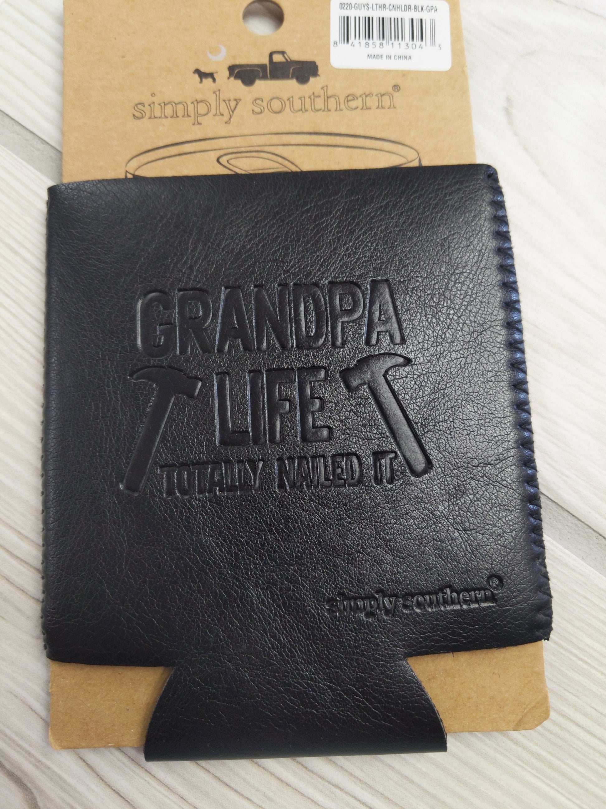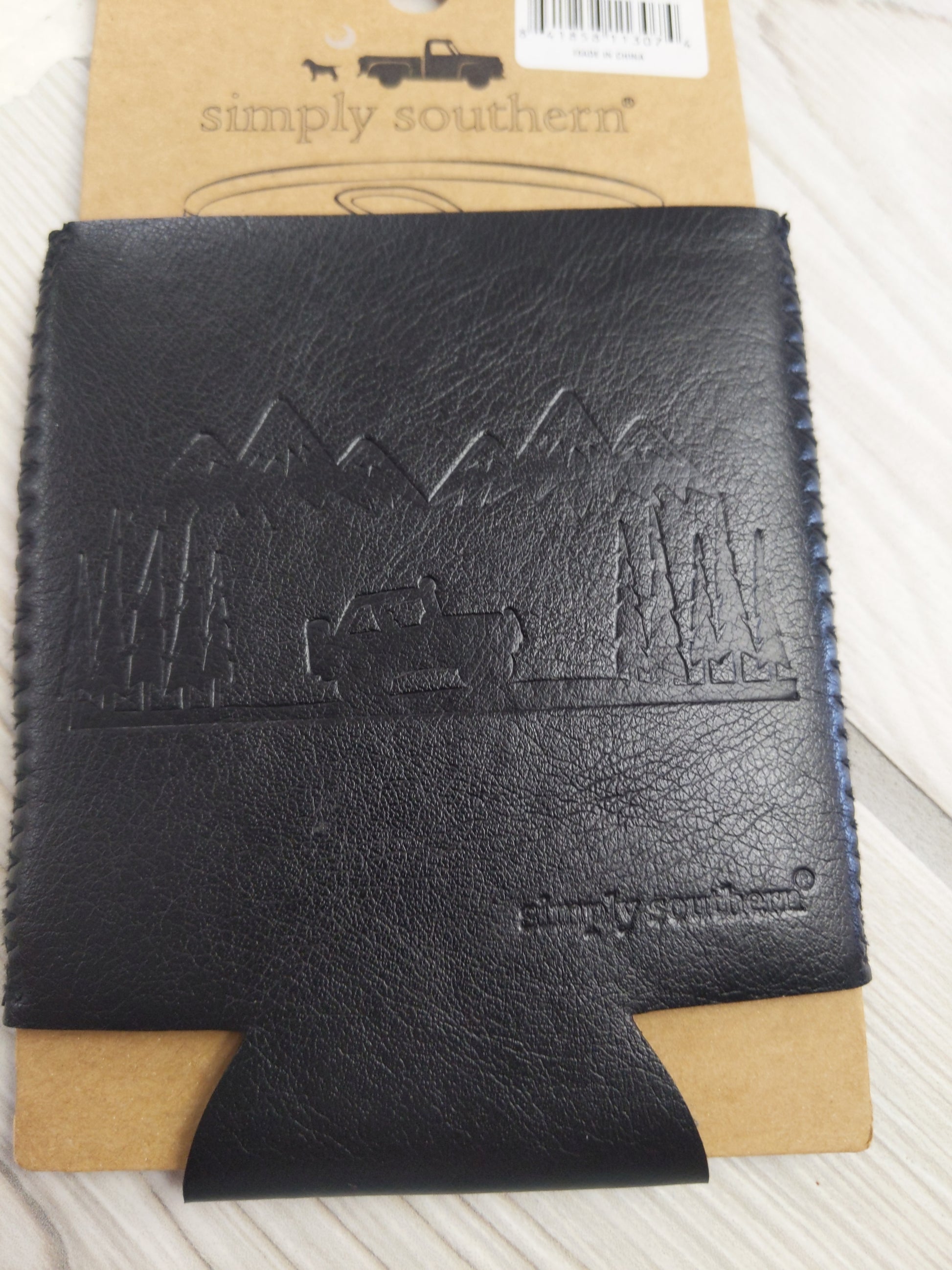 The Simply Southern stylish leather can holder designed to keep your beverages cold while on the go. Its durable and reliable construction ensures your drinks stay put, while its sleek black leather finish adds a sophisticated touch.