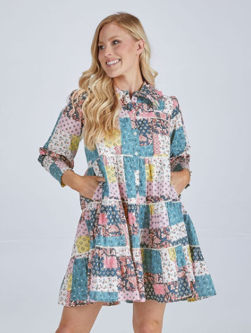 The Allie dress feature babydoll fit with tiered skirt, collared neckline, buttonfront closure, shirred cuffed, midi length and Simply Southern logo label. Made of 100% cotton.