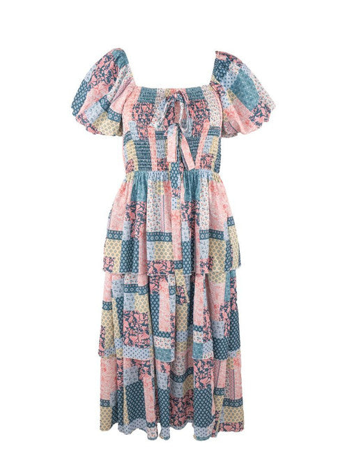 Show up In style in the Lucy dress. It features square neckline with puff sleeves, shirred bodice , tiered skirt, slit in skirt, bows at center front and Simply Southern logo label. Made of 100% polyester.