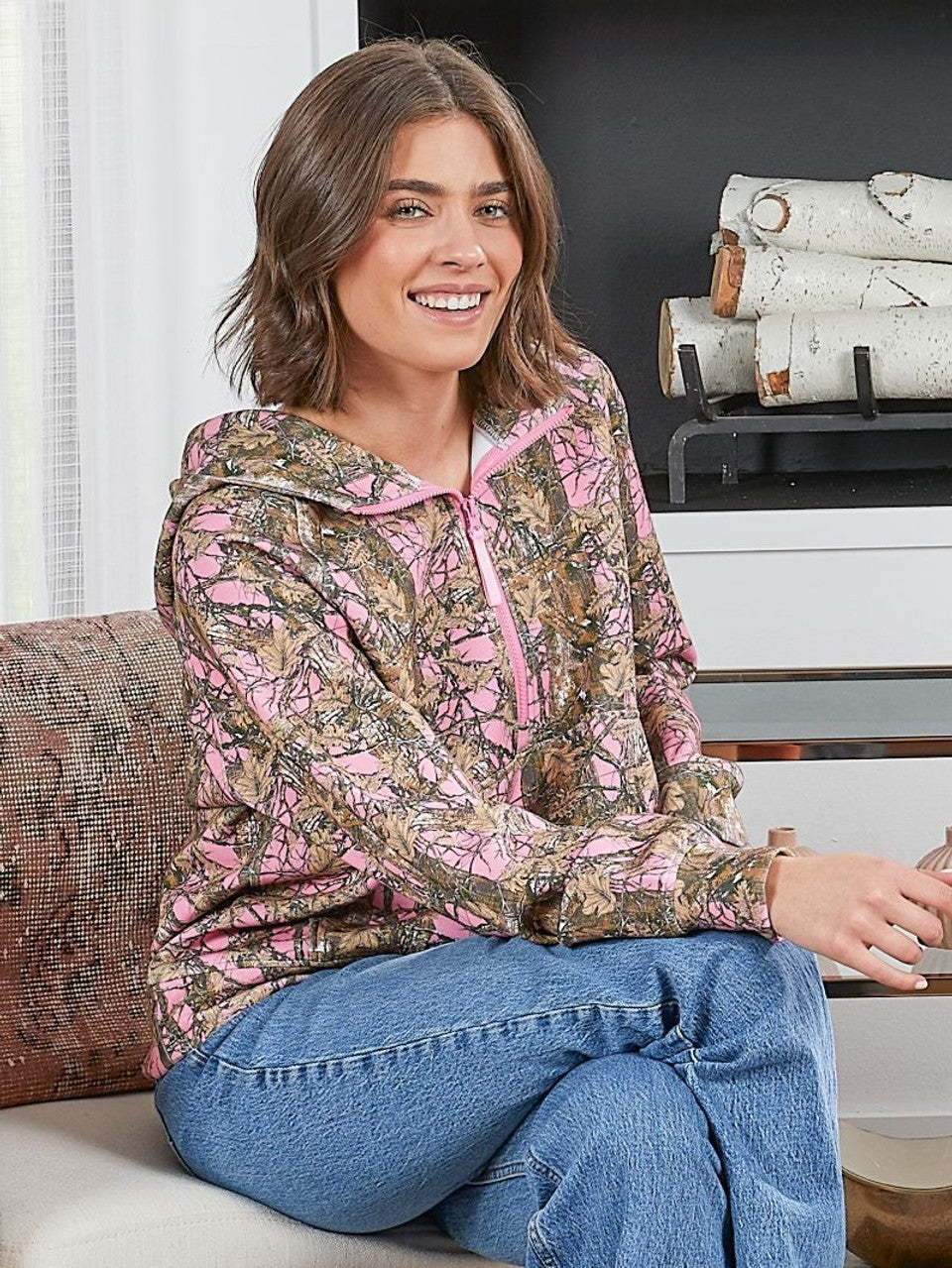 The Alara Hoodie features hood, half zip body, kangarooo pocket, and Simply Southern logo lable. Made of 48% modal 48% polyester 4% spandex