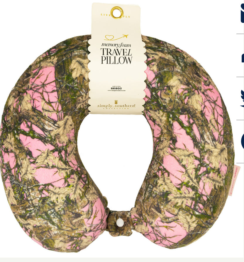 "Travel in style and comfort with Simply Southern's 0225-PILLOW-TRVL! This super soft travel pillow is perfect for any journey. Stay cozy on the go while showing off your unique camo pink design. Great for camping, road trips, or just lounging!"