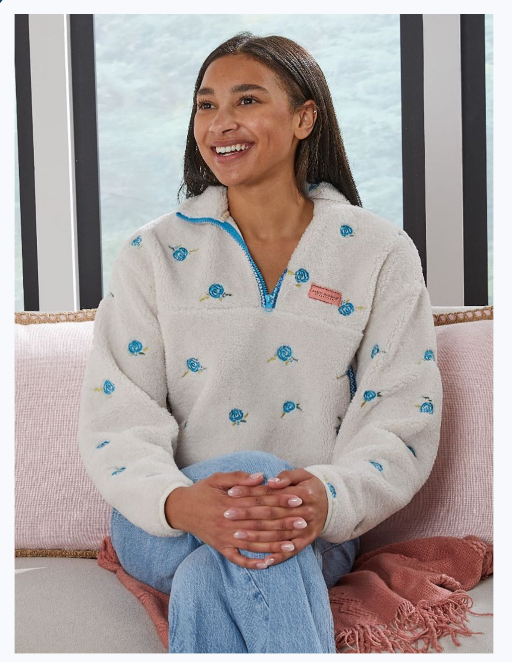 Stay cozy and warm all season long in this sherpa half zip pullover featuring front zip mock neck collar, front pockets, Simply Southern logo on chest and embroidered interior Simply Southern logo. Made of 100% polyester.