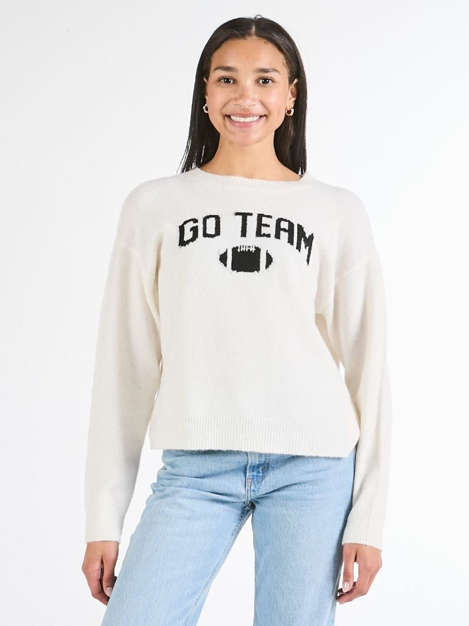 The Anastasia Sweater features multiple designs, crew neckline, relaxed fit, with cozy fuzzy texture. Made of 100% nylon.