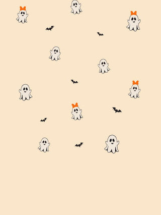 Sand long sleeve crew with ghosts and bats scattered over the front. 50% cotton/50% polyester blend. Range sizing.
