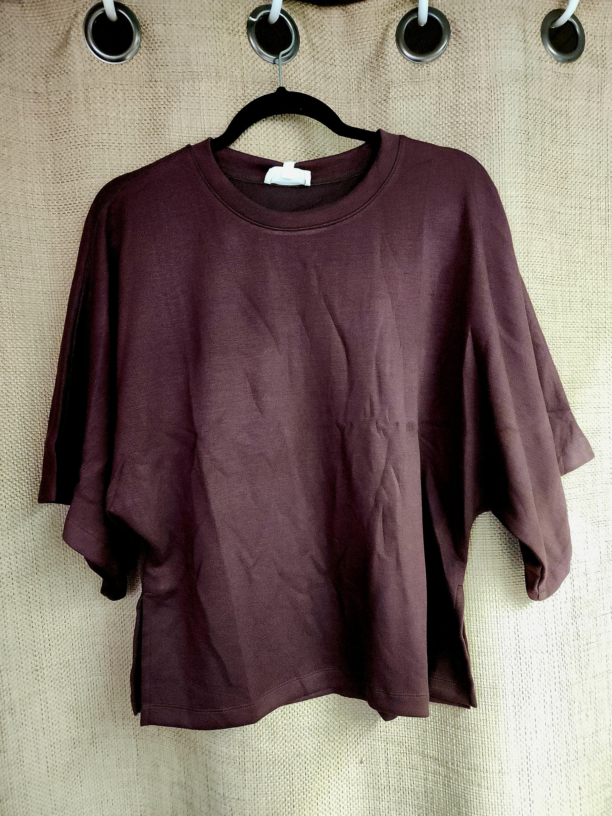 ENTRO - T28774 Brown Batwing Short Sleeve Relaxed Top