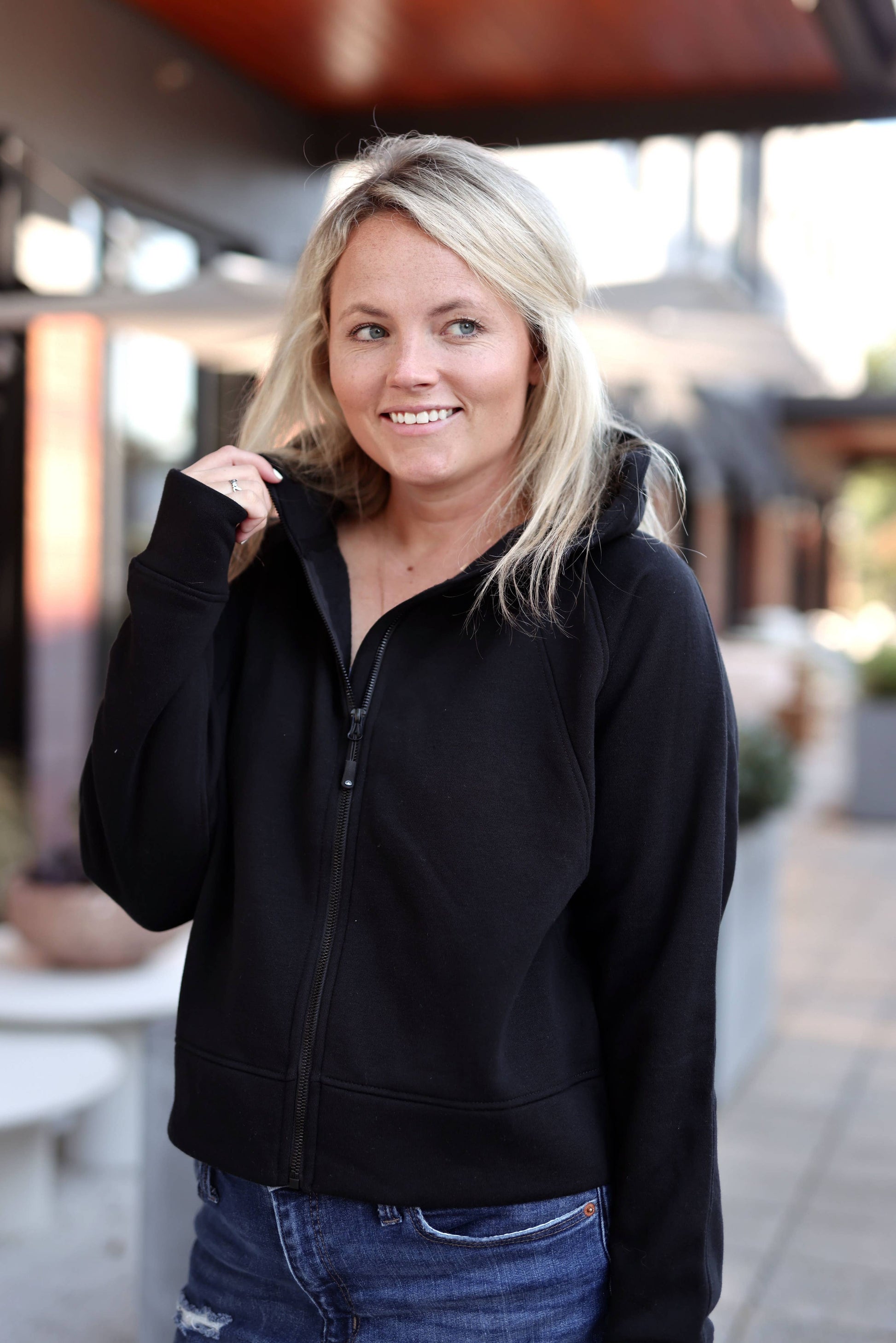 Experience the blend of happy vibes, empowerment, and Austin-born passion with the Gym to Trail Hoodie in Midnight from Jadelynn Brooke. This full-zip, longer cropped jacket with JLB fit is ideal for women who appreciate both style and functionality. Whether you're hitting the gym or out and about, this sweatshirt will keep you comfortable and confident. Its versatile design is perfect for an active lifestyle.