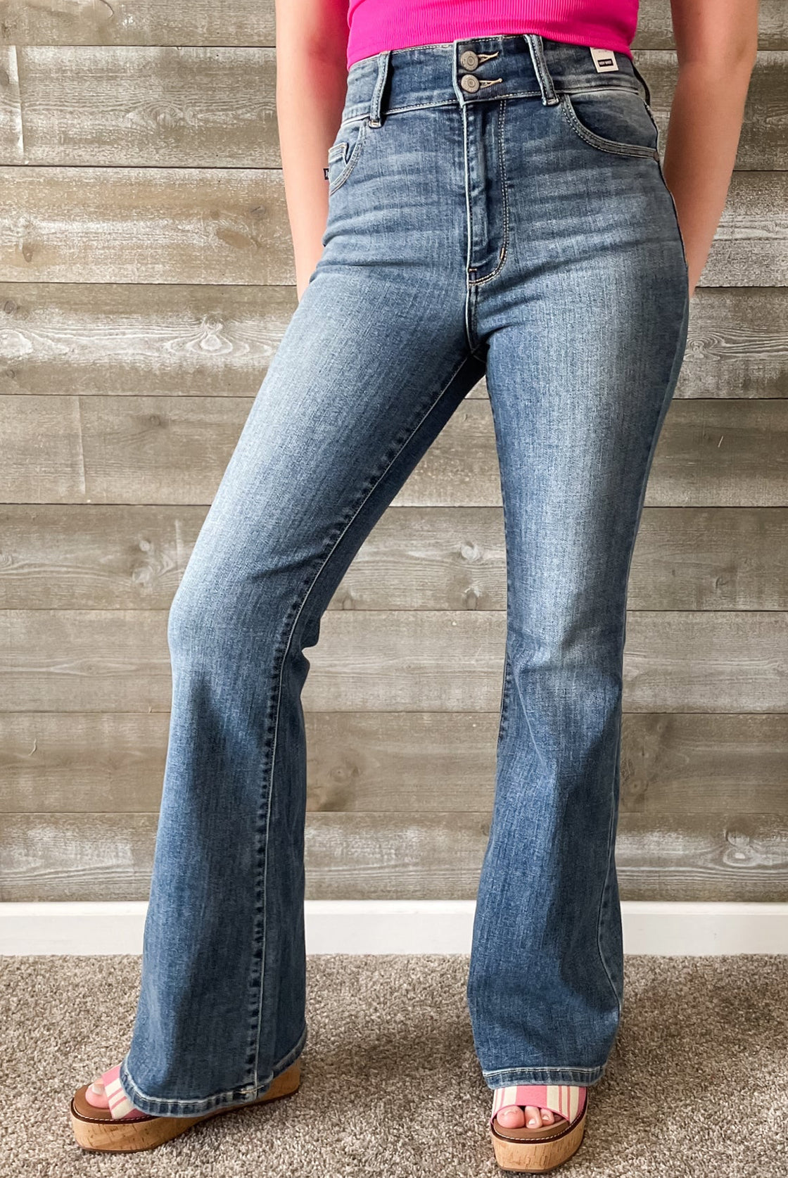 Introducing the JB 82630 REG HW Flare w/Tint - the perfect combination of style and comfort. With its high waist and flared design, this pair of jeans will accentuate your curves and elongate your legs. The tint adds a touch of uniqueness to your everyday look. Upgrade your wardrobe with these quirky jeans now!