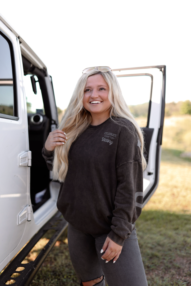 JLB-Gratitude (Midnight) - "My Go To" Oversized Sweatshirt / Acid Wash Crew