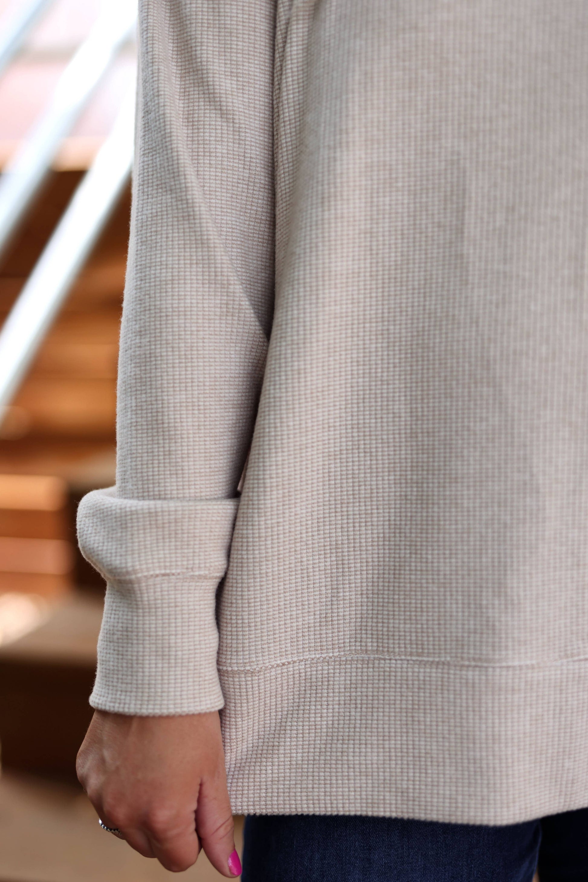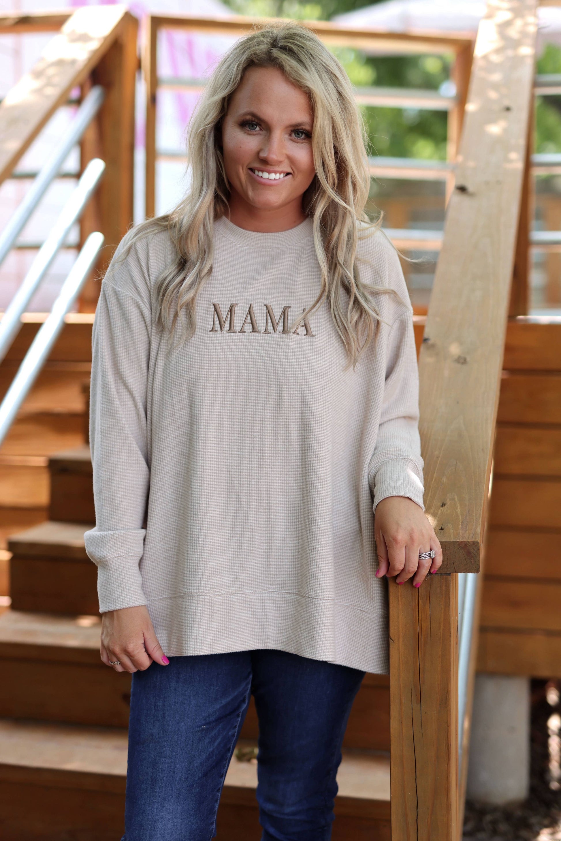 Mama 3DEmbroidery - Cozy Day Brushed Waffle Pullover (Latte)