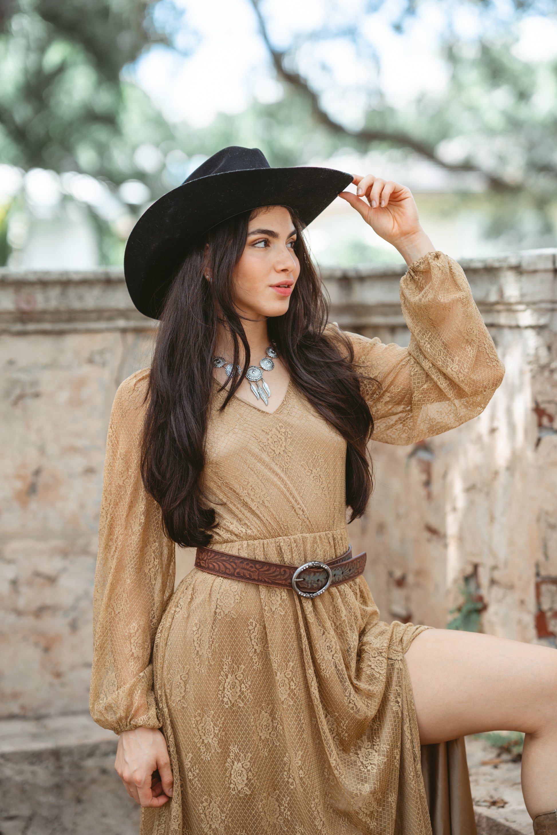 Love western floral embossed leather belts, turquoise, and rhinestones? Then this is the perfect belt for you! Make a statement with this western/rodeo/vintage styled genuine leather belt embossed with turquoise tinted floral designs and matched with an antique silver toned circle buckle with rhinestones embedded for the perfect amount of bling. Wear this belt with your denim jeans, wide leg pants, skirts, or your favorite cowboy outfit! The intricate designs and subtle hints of turquoise and rhinestones make this belt unique and stylish. This western turquoise tinted floral embossed brown leather belt with a rhinestone ring buckle is available for wholesale and boutiques!