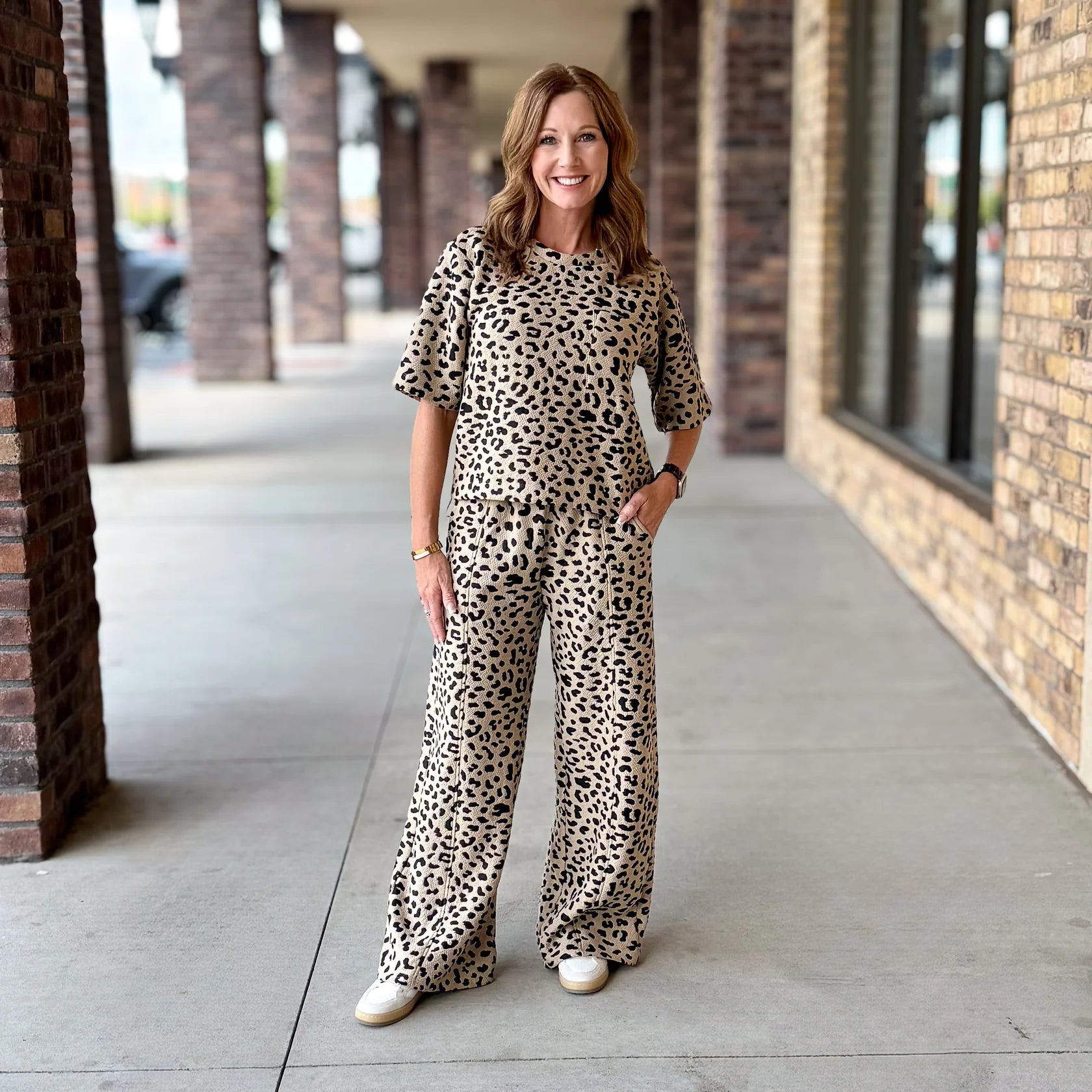 SY9110-Half Sleeve Textured Knit Leopard Print Top