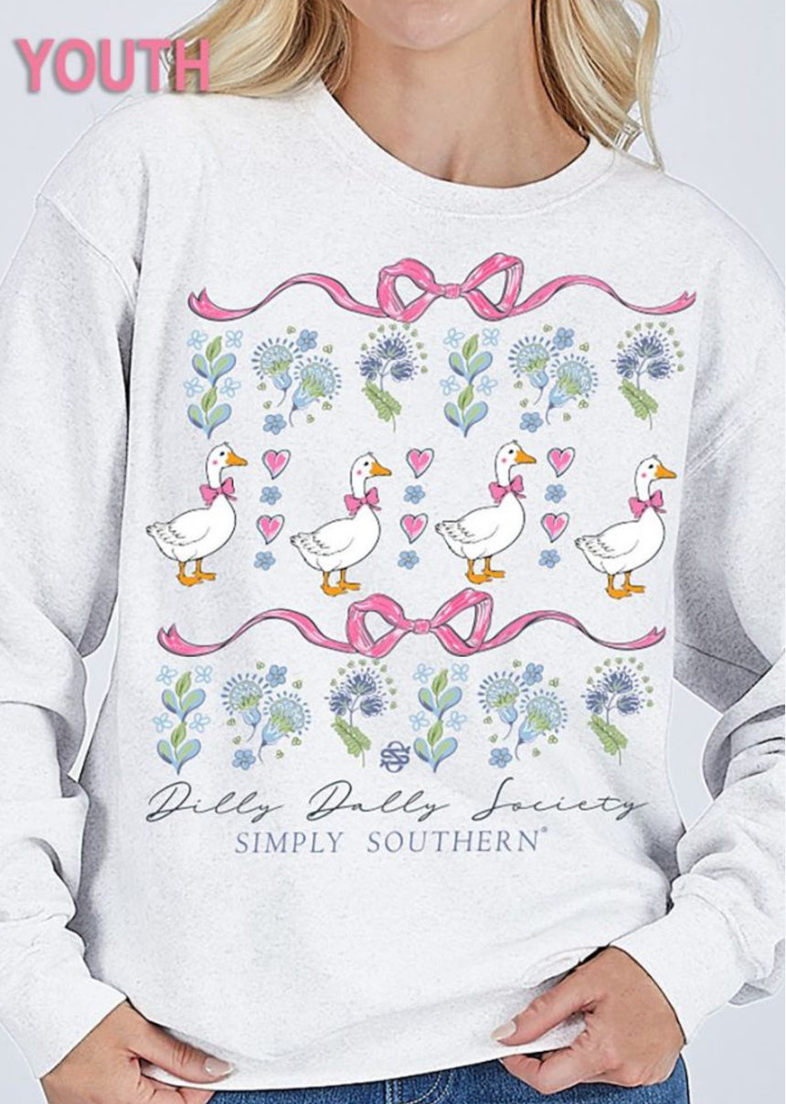 Stay cozy and stylish with the YTH-CREW-DILLY-WHITE sweatshirt. Made with high-quality materials, this sweatshirt keeps you warm while adding a touch of quirkiness to your outfit. Perfect for any casual occasion, it's a must-have addition to your wardrobe. (No more boring hoodies for you!)