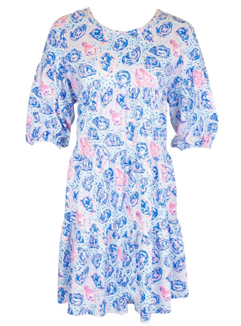 "Get ready to shell out some serious style with this puffy dress from Simply southern! Featuring their exclusive oyster pattern, this youth dress is perfect for any occasion (especially ones with seafood). Don't be shellfish, add it to your wardrobe today!"
